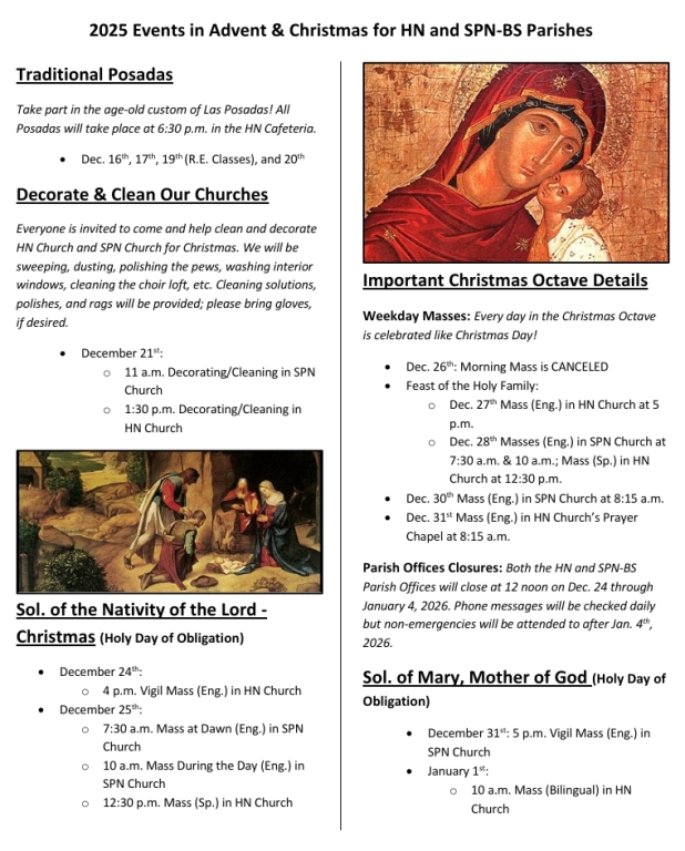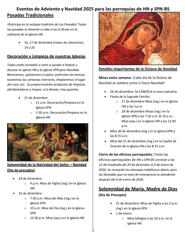 - Dec 18 2025 6:30 pm - Evening Mass at Holy Name--Spanish